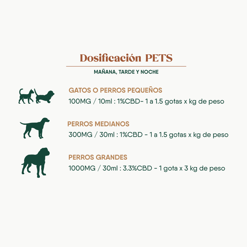 100 MG / 30 ML: 3.3% CBD - 1 Gotas x 3 kg de peso.
