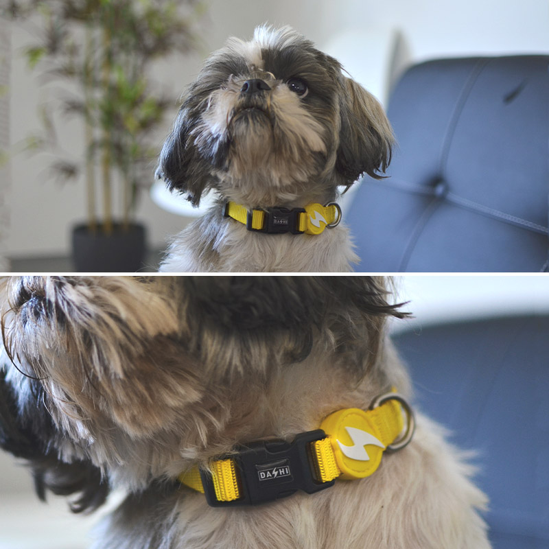 Nuestros collares están fabricados en nailon resistente, totalmente ajustable, con cierre de 4 puntos para la seguridad de tu perro.