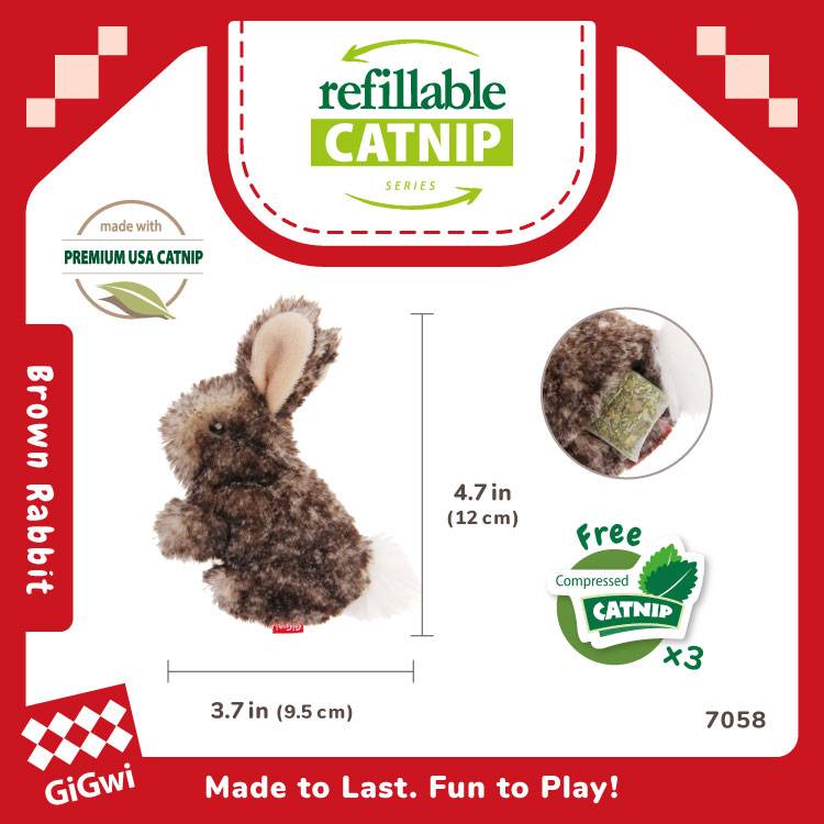 GIGWI RABBIT REFILLABLE CATNIP W/3 CATNIP TEABAGS IN ZIPLOCK BAG - 7058