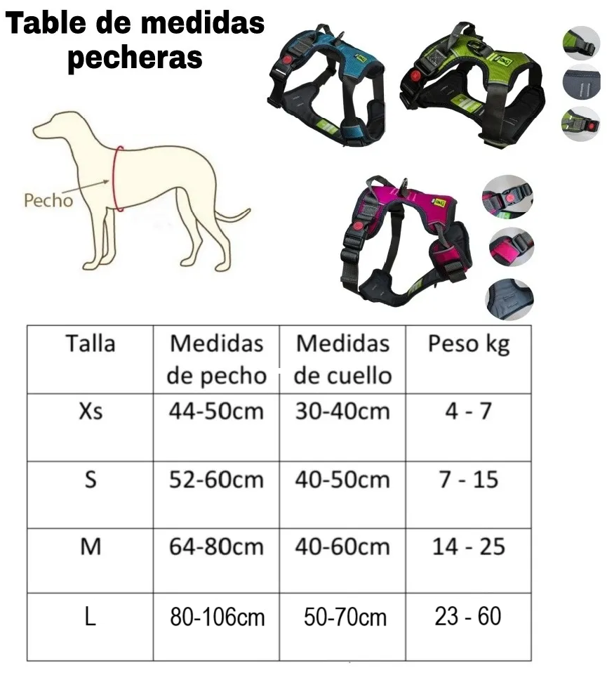 Sus arnés son regulable para permitir agrandar y ajustar según el tamaño de tu mascota, tienen un rango de graduación de 10 a 20cm dependiendo la talla.