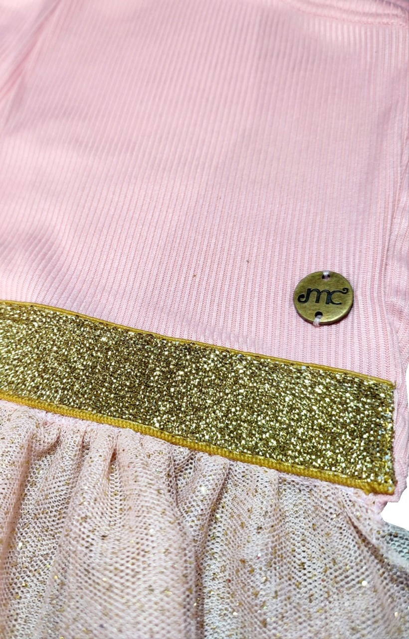 MONCHERI VESTIDO ROSADO CON LAZO DORADO
