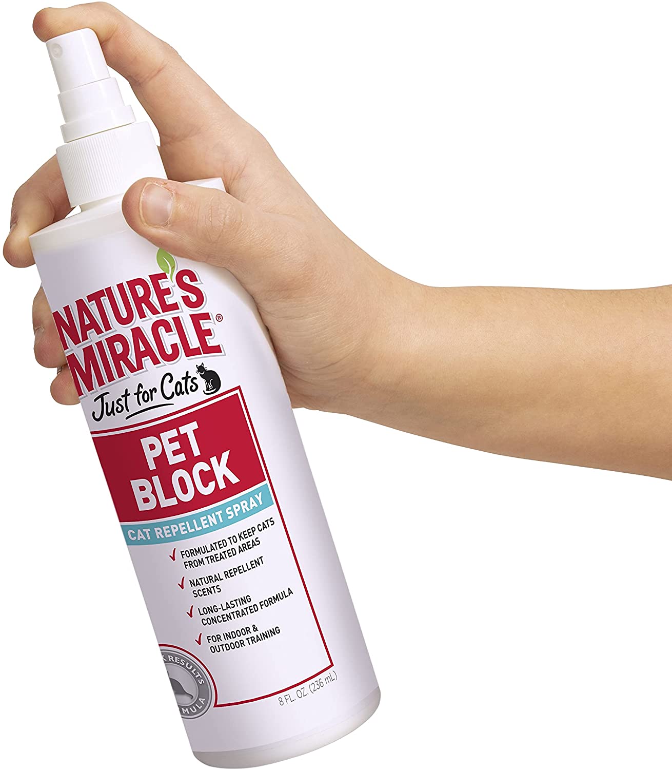 Repelente para gatos de interior y exterior altamente eficaz. Pet Block Repelente para gato Nature’s Miracle está especialmente diseñado para mantener a su gato lejos de áreas fuera de límites de su casa y patio. Nuestra fórmula de larga duración y concentrada contiene olores repelentes naturalmente que le son negados por su gato.