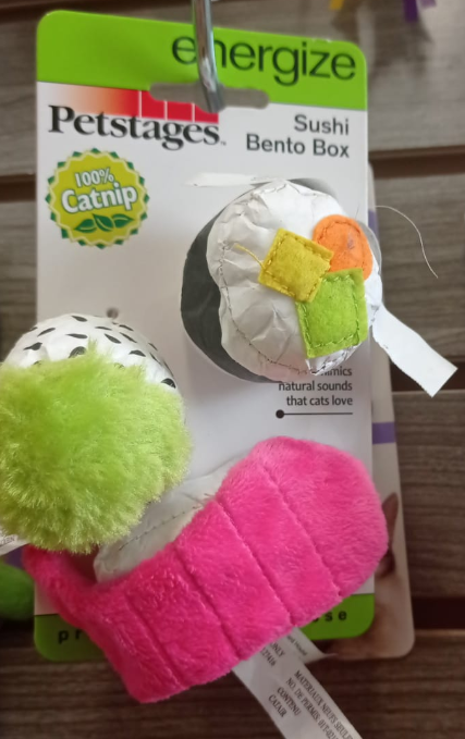 Los juguetes para gatos Petstages son la forma perfecta para que tu gato curioso haga el ejercicio físico y mental que necesita para mantenerse sano y comprometido. No se necesitan palillos para que el gatito juegue con esta elegante caja bento de sushi. Estos rollitos de pescado rellenos 100% con hierba gatera son deliciosamente divertidos.