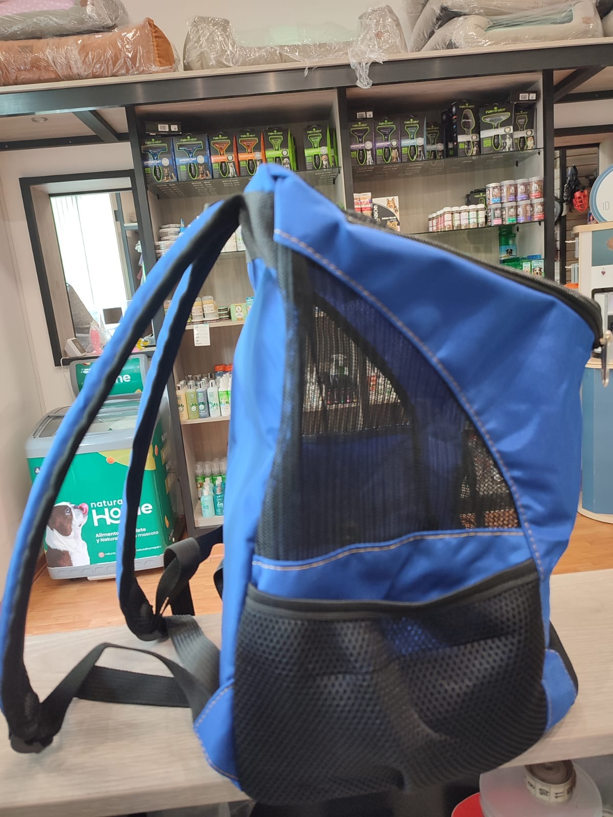 Bolsillos de malla para almacenamiento. Las ventanas de malla están ventiladas y visibles, haciendo que tu mascota respire libremente y se relaje. La entrada superior con cremallera permite un fácil acceso. Los bolsillos laterales de malla ayudan a almacenar correa, silbato, agua, aperitivos, dulces y otras necesidades.